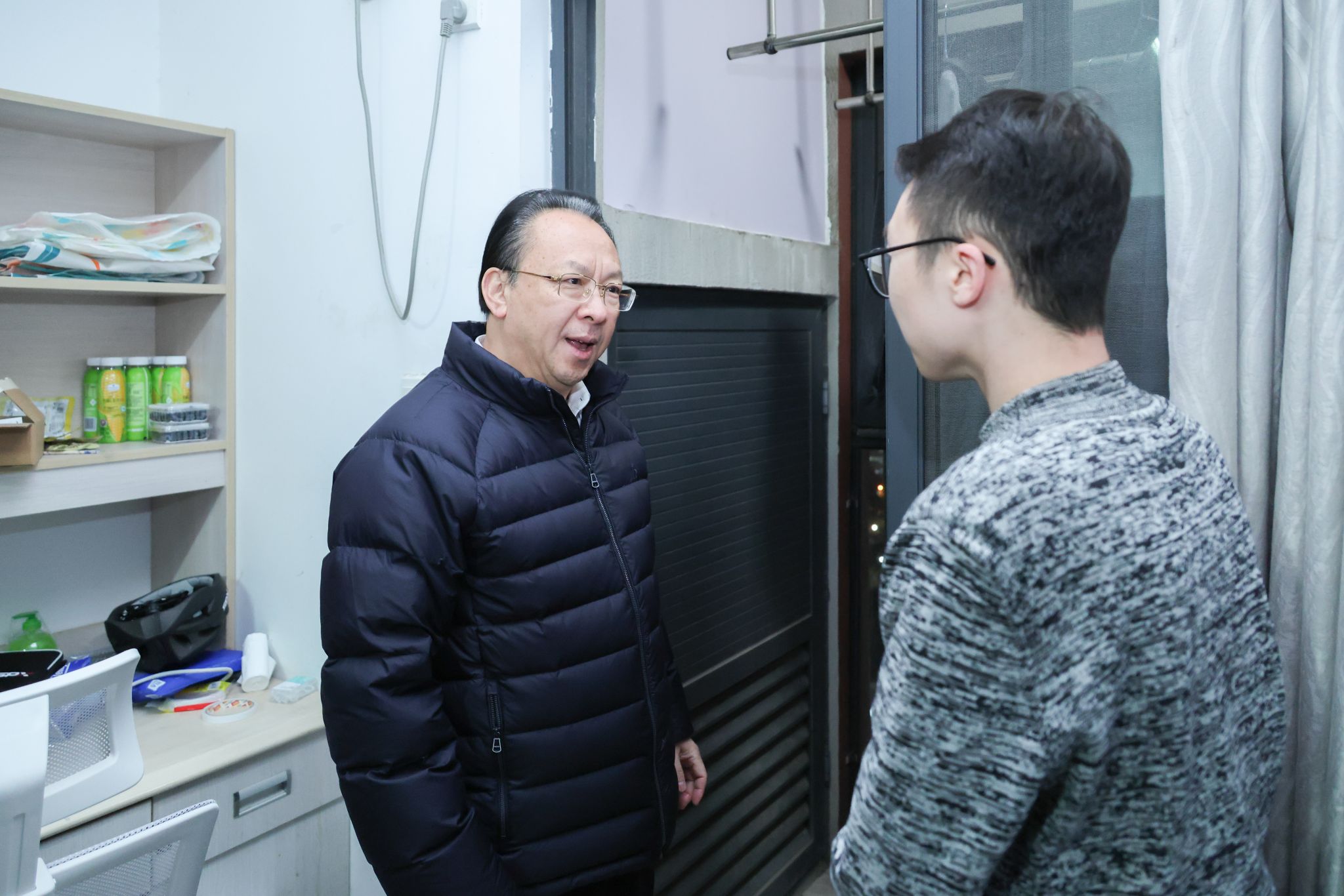 12月25日晚,大学委书记、科学院院士谭铁牛深入四组团学生宿舍开展随机走访,实地了解学校近期施工对学生生活及学习的影响。