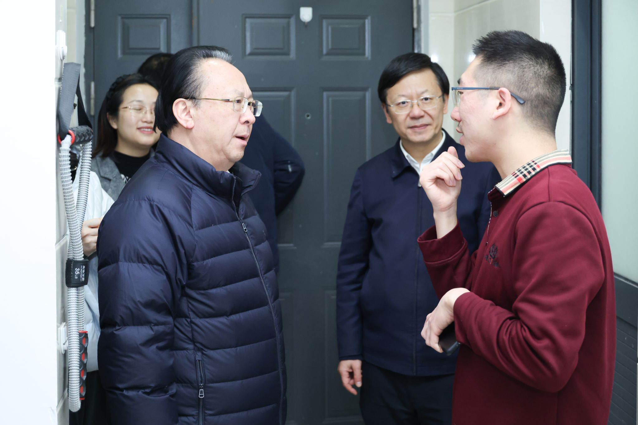 走访过程中,谭铁牛随机走进距施工现场最近的16幢、24幢不同楼层及专业的学生宿舍,尤其关切高层等受噪音影响可能性较大的宿舍情况。他与同学们亲切交流,细致询问了受施工干扰程度、午休及夜间睡眠质量、对隔音措施的感受等问题,同时关心同学们的日常生活学习细节。谭铁牛嘱咐同学们,可随时通过各类渠道向学校反馈意见及建议,学校将及时回应处理,并对同学们展现出的大局意识、主人翁精神,及对学校工作的理解与支持表示衷心的感谢,希望大家能在安心学习、快乐成长。